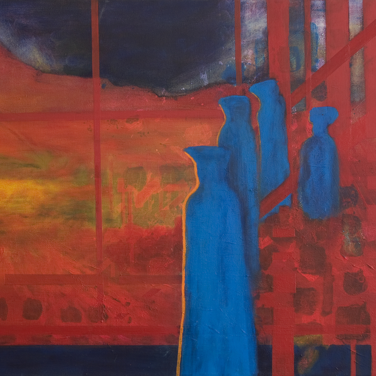 Meine Landschaften verbinden die Leichtigkeit des Aquarells in Indigo mit graphischen Formen in Schwarz. Die Köpfe sind in Mischtechnik klar und einfach gehalten. Beim genaueren Hinsehen der in Serie gearbeiteten Exponate erschließen sich dem Betrachter unterschiedliche Gefühlsausdrücke. Die figürlichen Arbeiten in Farbe, Acryl oder mit Graphik/Bleistift zeigen graphische Formen mit erzählerischen Sujets.
