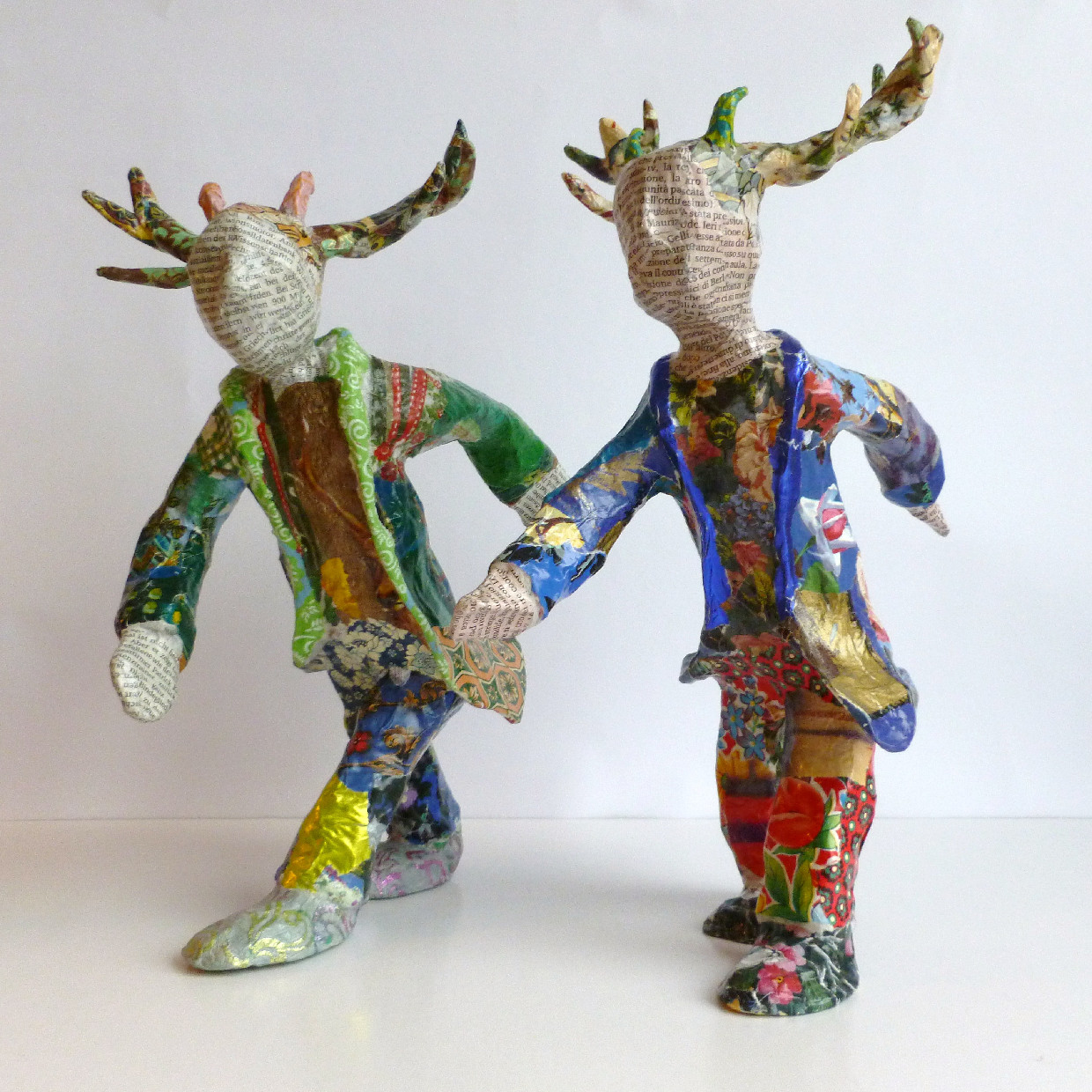 "Heike Roesner hat die traditionelle Technik des Papierkaschierens für sich entdeckt und fertigt Unikate, farbenprächtige Objekte aus Draht, Papier, Kleister und Lack. Deren Zauber entsteht aus ihrer vermeintlichen Naivität, einer zumeist erzählerisch angereicherten Form, und ganz besonders durch den visuellen Reichtum der aus diversen Papieren collagierten Oberfläche. Den Papieren selbst ist durch Herkunft, Alter, Farbe und Druck ein "kultureller Code" eingeschrieben, der, seiner Zweckhaftigkeit beraubt, rätselhaft wirkt..." (Anita Wünschmann in Kunsthandwerk & Design, 6/2007)