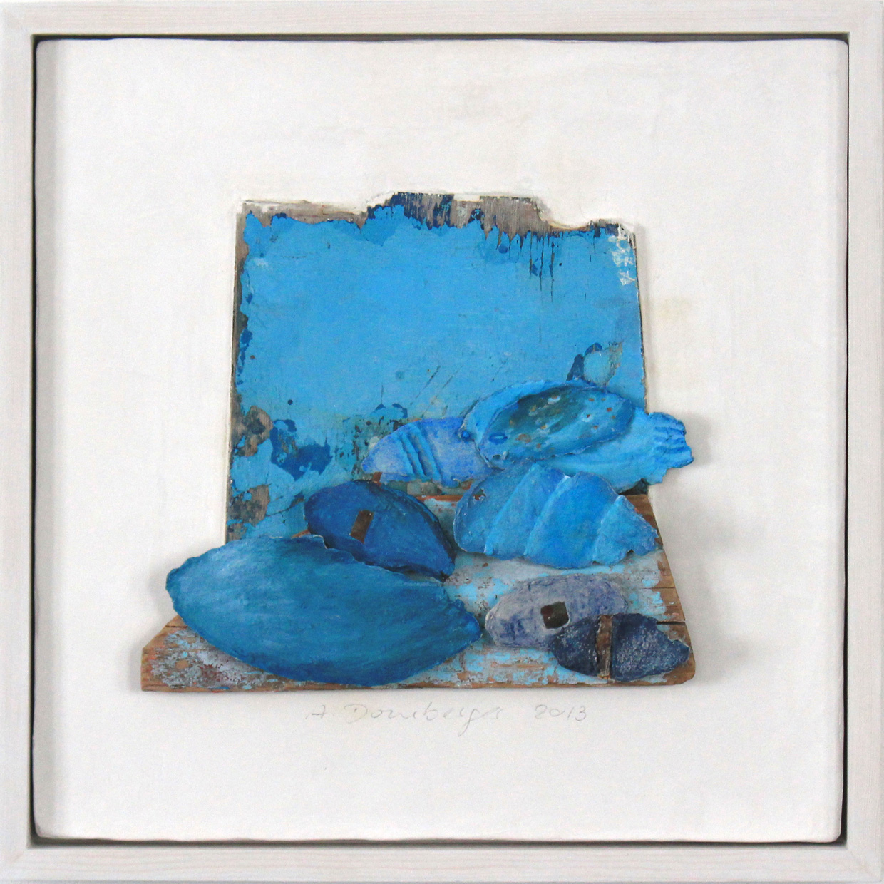 In der Ostküstenserie nähert sich Annette Domberger den vielfältigen Phänomenen der Küste auf scheinbar dokumentarische Weise. Ihr besonderes Interesse gilt dabei allerdings eher dem Geheimnisvollen, Rätselhaften, Wundersamen der Erscheinung der Dinge. Die dabei entstehenden Assoziationsketten setzt sie in ihrer spezifischen Bildsprache in verschiedenen Techniken zu einer neuen Sicht auf die Phänomene um.