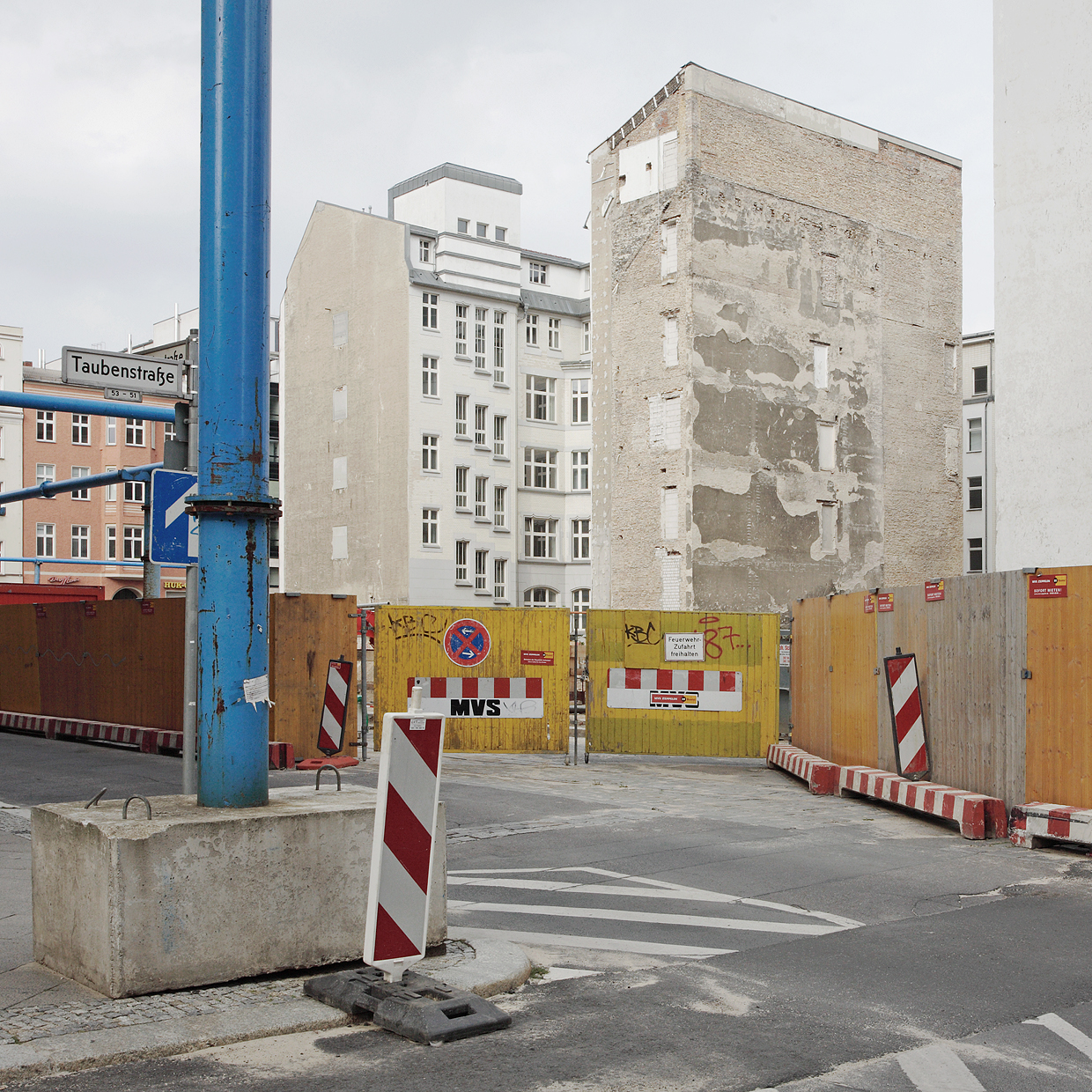 Eine endlos scheinende Folge von Baustellen überzieht Berlin-Mitte seit dem Mauerfall. Einerseits alltägliches Ärgernis, andererseits ignoriert und unbeachtet erobern temporäre Einrichtungen den urbanen Raum: Eine Ästhetik des planlosen Zusammentreffens von Brachen, Brandwänden und Baugerät überformt den Stadtraum und widerspricht der Idee einer zielgerichteten Stadtplanung.