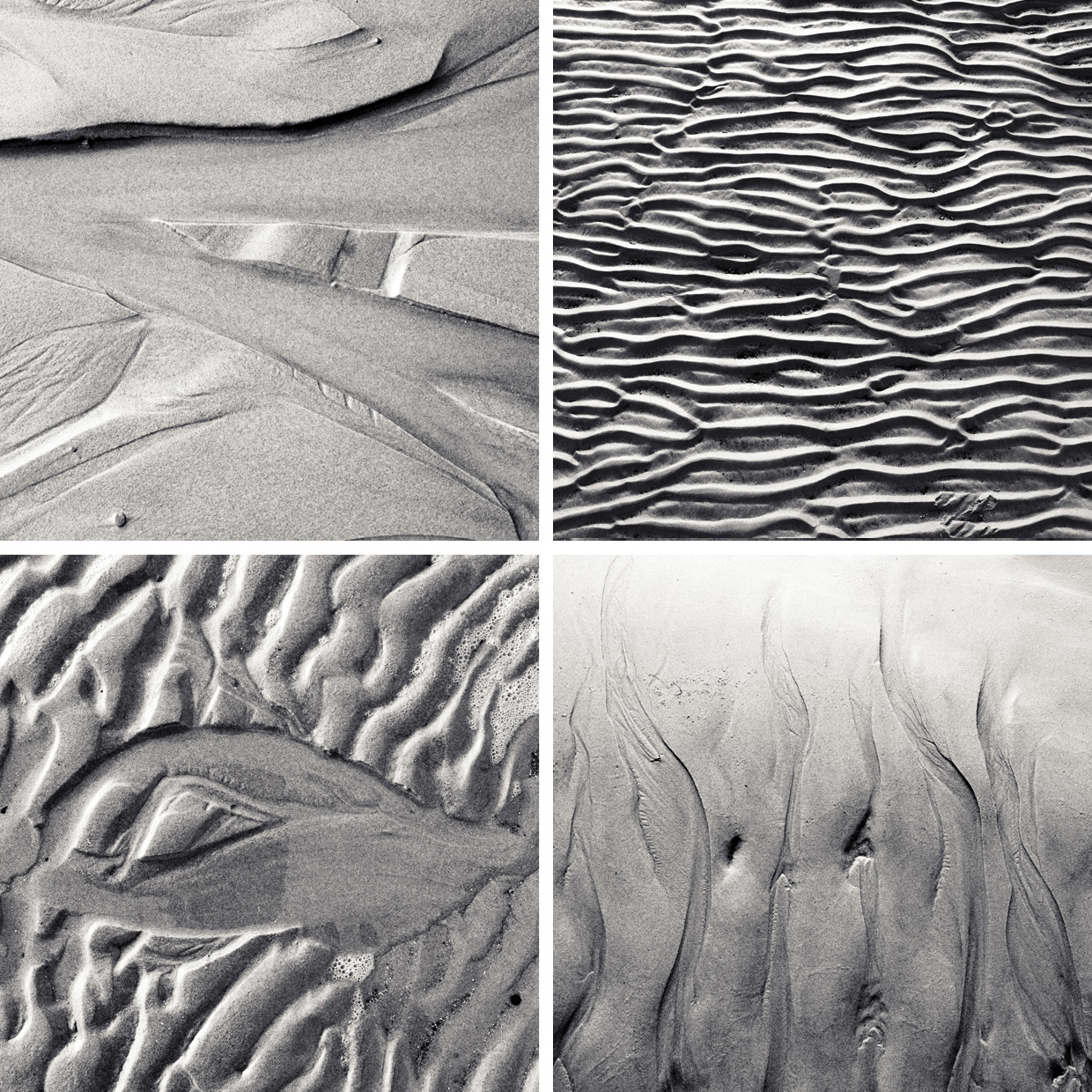 In meinen fotografischen Arbeiten finden sich oft farbige oder monochrome Natur- und Stadtlandschaften. Eine aktuelle Arbeit führte mich auf eine Sandbank im Wattenmeer. Im stetigen Rhythmus zwischen Ebbe und Flut kommt und geht das Meer und hinterlässt seine Spuren auf dem Meeresboden. So entstehen einzigartige temporäre Kunstwerke im Sand.