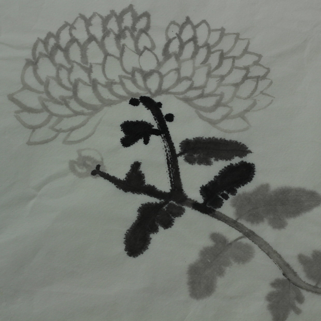 Zweige und Blüten mit einfachen Pinselstrichen zeigen das Wesentliche des Motivs. Der Ausdruck ist Reduktion im Gegensatz zu Fülle.