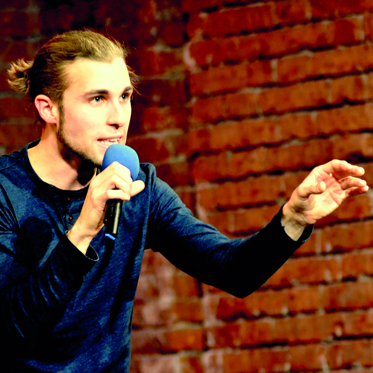»Vrrrm. Pssschh. Mmmm. Klp. Bff....« Am Mikrophon Sebastian Fuchs. Nur mit seinem Mundwerk erforscht der Sprecher, Beatboxer und Vokalartist den Urknall der Laute, erzählt Märchen ohne Worte, lauscht den Leiden eines geräuschüberfluteten Menschen. Ein feinziselierter Mix aus Performance-Poesie, Storytelling, Beats und vokalen Soundeffekten, nach denen Sie die Welt mit anderen Ohren hören werden.
