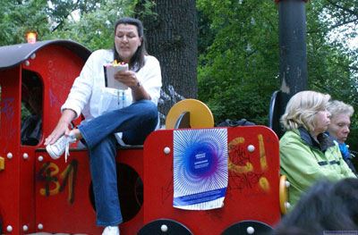 Barbara Gantenbein liest aus ihrem Krimi "Todesspiel in Friedenau" auf dem Spielplatz Perelsplatz: