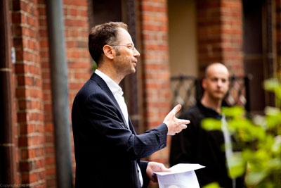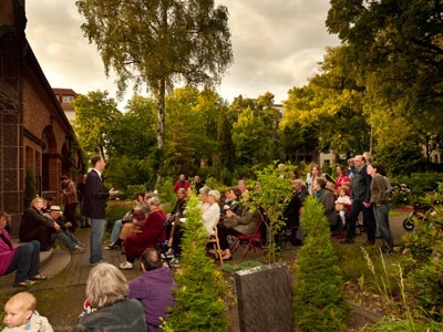 Torsten Körner las aus seinem Buch "Probeliegen, Geschichten vom Tod" auf dem Friedhof Stubenrauchstraße