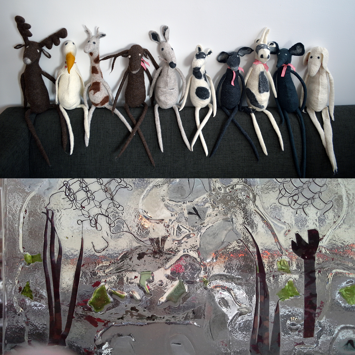 Mit Aluminium- und Kupferresten entwirft Monika Schuh Unterwasserwelten und lässt diese im Fusingofen mit Glas zu Gläsernen Geschichten verschmelzen.