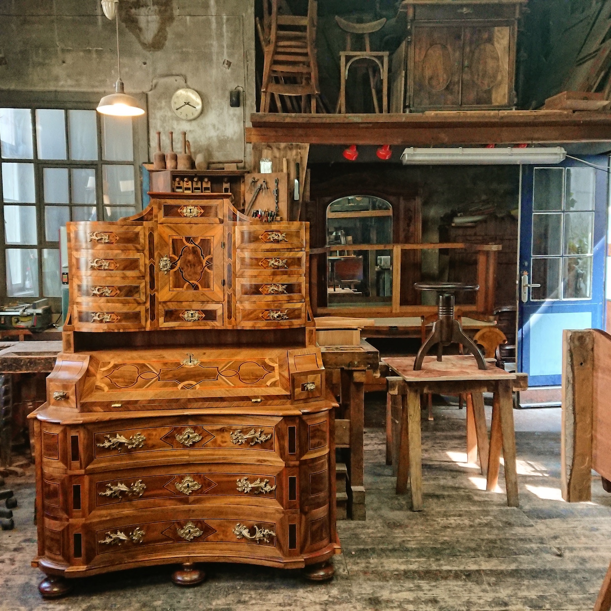 Wer die alte Werkstatt besucht, fühlt sich nicht nur an einen anderen Ort, sondern auch in eine andere Zeit versetzt. In einem Hinterhof eines gewöhnlichen Mietshauses befindet sich die Remise, die Michael Wintjen als Werkstatt dient. Patina und altes Holz prägen das Bild. Fast scheint hier die Zeit stehen geblieben zu sein. Der Ort ist geprägt von einer großen Ruhe und Gelassenheit. Man hat das Gefühl, Zeit spielt keine Rolle. Der perfekte Ort, um sich mit alten Möbeln zu beschäftigen.