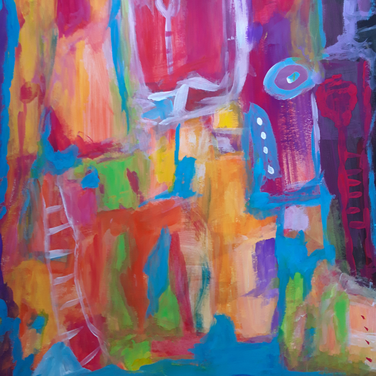 Zu sehen sind klein- und großformatige abstrakte Farbkompositionen und gegenständliche Malarbeiten in Acryl sowie Wort- und Bildcollagen in Mischtechnik. Ich lege in meinen Arbeiten besonderen Wert auf menschliche Begegnungen, die mir zur Kraftquelle wurden.