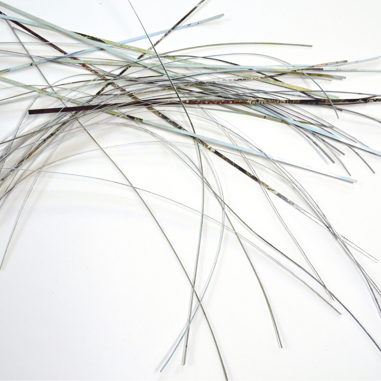 Dagmar Schaeffert verarbeitet unterschiedlichste Papiere und Magazine zu zarten, haptischen Papiergebilden. Durch gezielte feine Schnitte, Reißen oder Besticken der Papiere und Papierstapel entstehen neue Strukturen und Oberflächen. Die entstandenen Objekte bewegen sich dabei immer im Spannungsfeld von Collage und Skulptur.