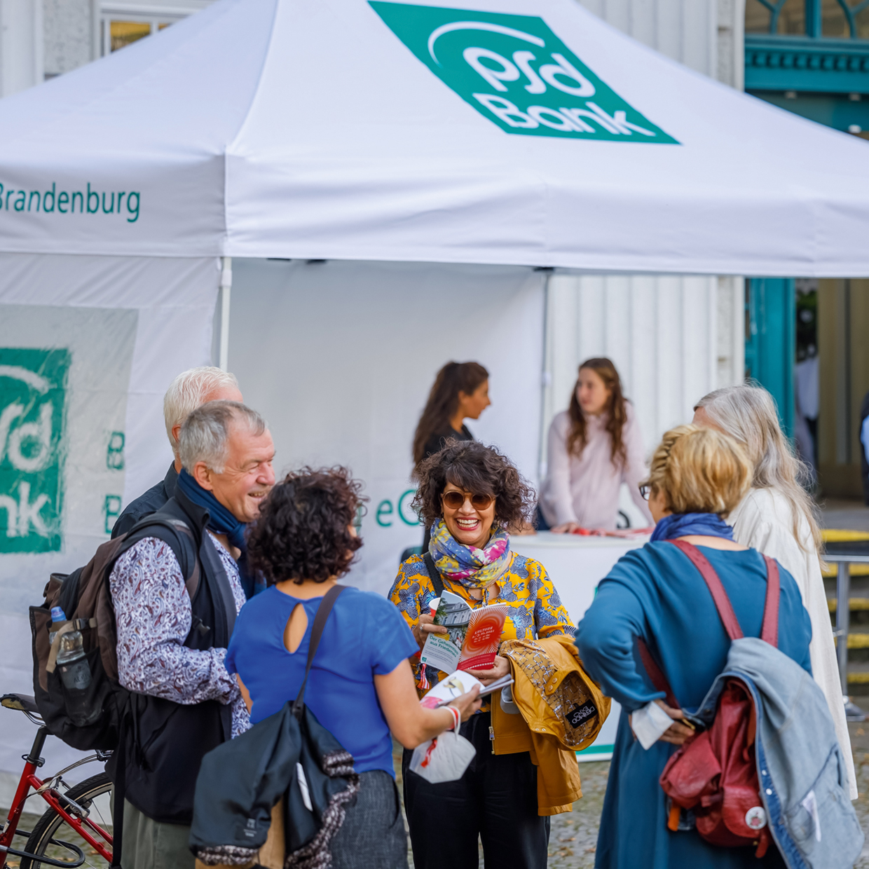 Das historische Postgebäude der PSD Bank ist auch in diesem Jahr wieder der zentrale Infopunkt des Kulturrundgangs. Hier können Sie sich über die Stationen der teilnehmenden Künstlerinnen und Künstler informieren. Bei einem Glas Sekt kommen Sie mit anderen Gästen ins Gespräch.