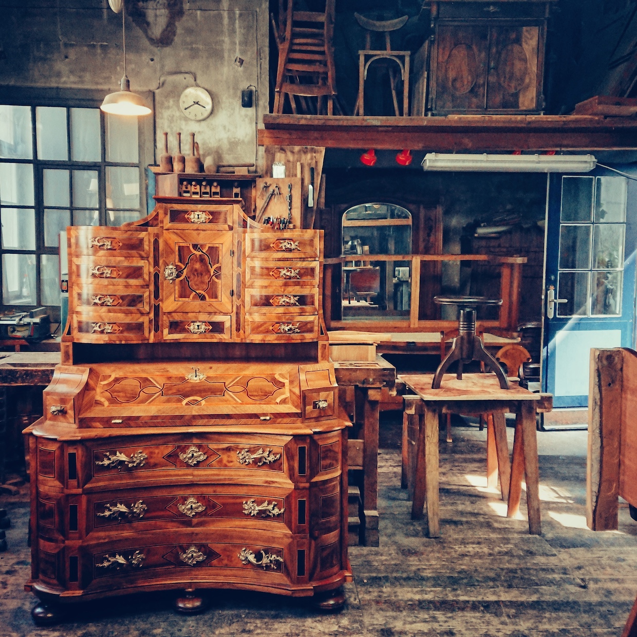 Wer die alte Werkstatt besucht, fühlt sich nicht nur an einen anderen Ort, sondern auch in eine andere Zeit versetzt. In einem Hinterhof eines gewöhnlichen Mietshauses befindet sich die Remise, die Michael Wintjen als Werkstatt dient. Patina und altes Holz prägen das Bild. Fast scheint hier die Zeit stehen geblieben zu sein. Der Ort ist geprägt von einer großen Ruhe und Gelassenheit. Man hat das Gefühl, Zeit spielt keine Rolle. Der perfekte Ort, um sich mit alten Möbeln zu beschäftigen.