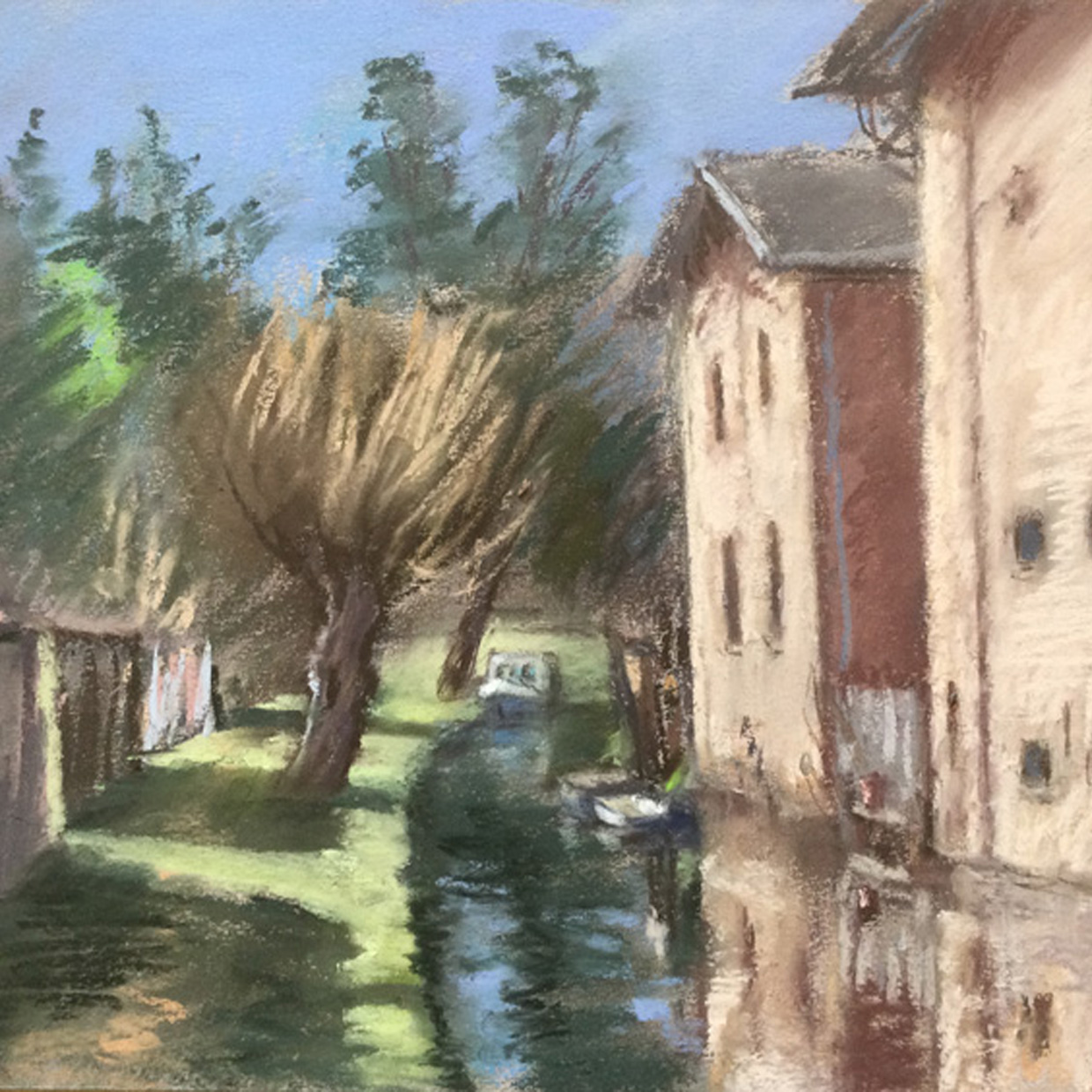 Ausschnitt aus einer plein-air-Pastellzeichnung: Mühlenbach in Lychen.