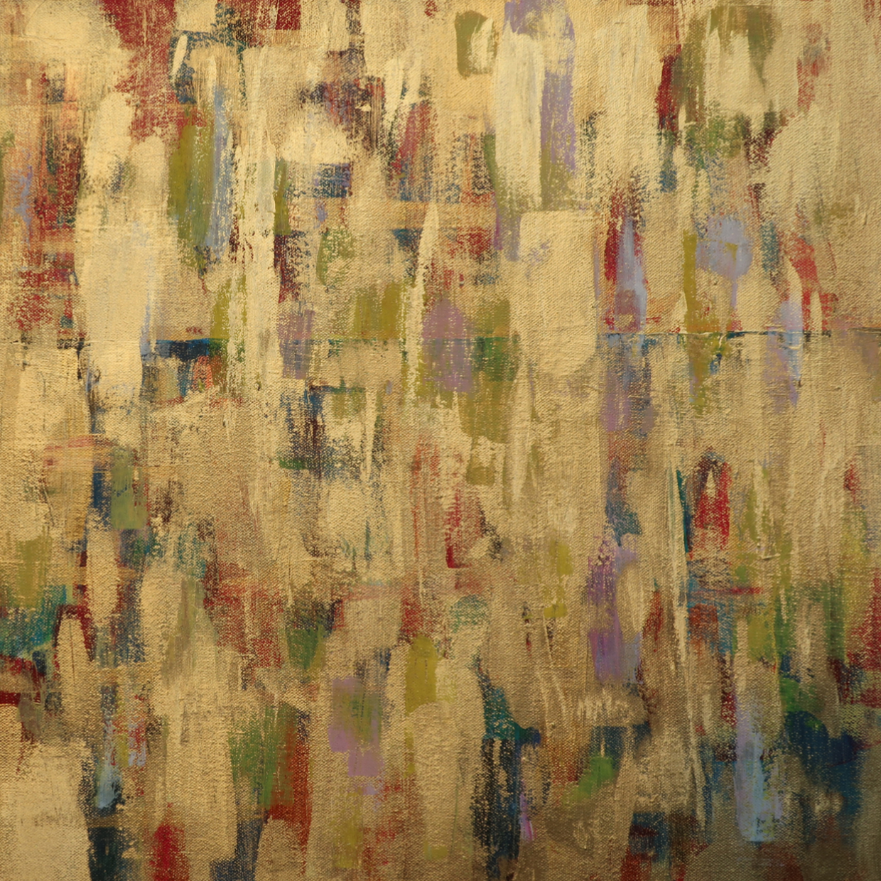 Farben, Pigmente und Gold lassen durch Überlagerung Licht- und Schattenbereiche entstehen, die sich im Wechsel des Lichtes dynamisch verändern und dadurch eine besondere Faszination entwickeln.