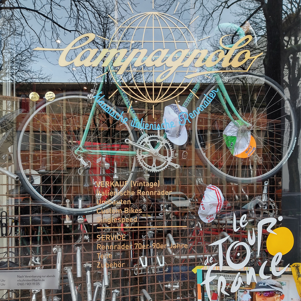 Das Bici da Corsa ist ein Ort, der die goldene Ära der italienischen Rennräder sichtbar macht. Wir kümmern uns um die Erhaltung dieser Räder, wir restaurieren und verkaufen. Unser Geschäft zeigt eine Auswahl teils seltener Marken, Rahmen, tolle Details, Pantographien mit Geschichte und unbedingt die Leidenschaft, die in die Entwicklung und den Bau dieser Räder geflossen ist. Die Quelle unserer Räder liegt in Italien, einem Ort in der Nähe von Turin, von dort erhalten wir Rennräder im Originalzustand aus den 70er, 80er und 90er Jahren.