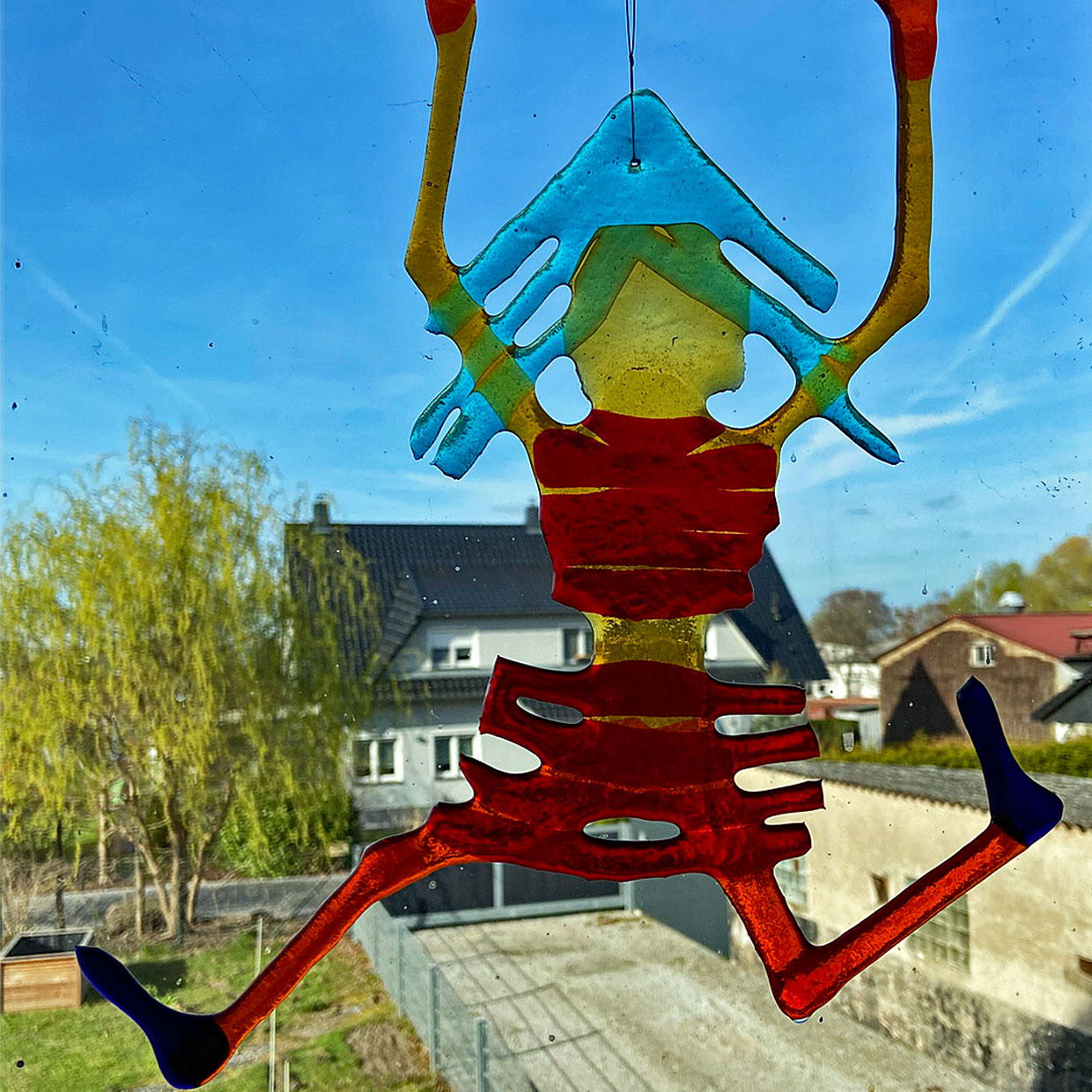 Glas ist ein sensibles Material, das mit Achtsamkeit behandelt werden will. Es lassen sich Farben und Formen auf originelle Art kombinieren. Im Resultat entdecke ich eine neue Sicht auf die Umwelt und verändere meinen Alltagsblick. Neben Glas experimentiere ich mit Papier, Keramik, Malerei und Collagen.