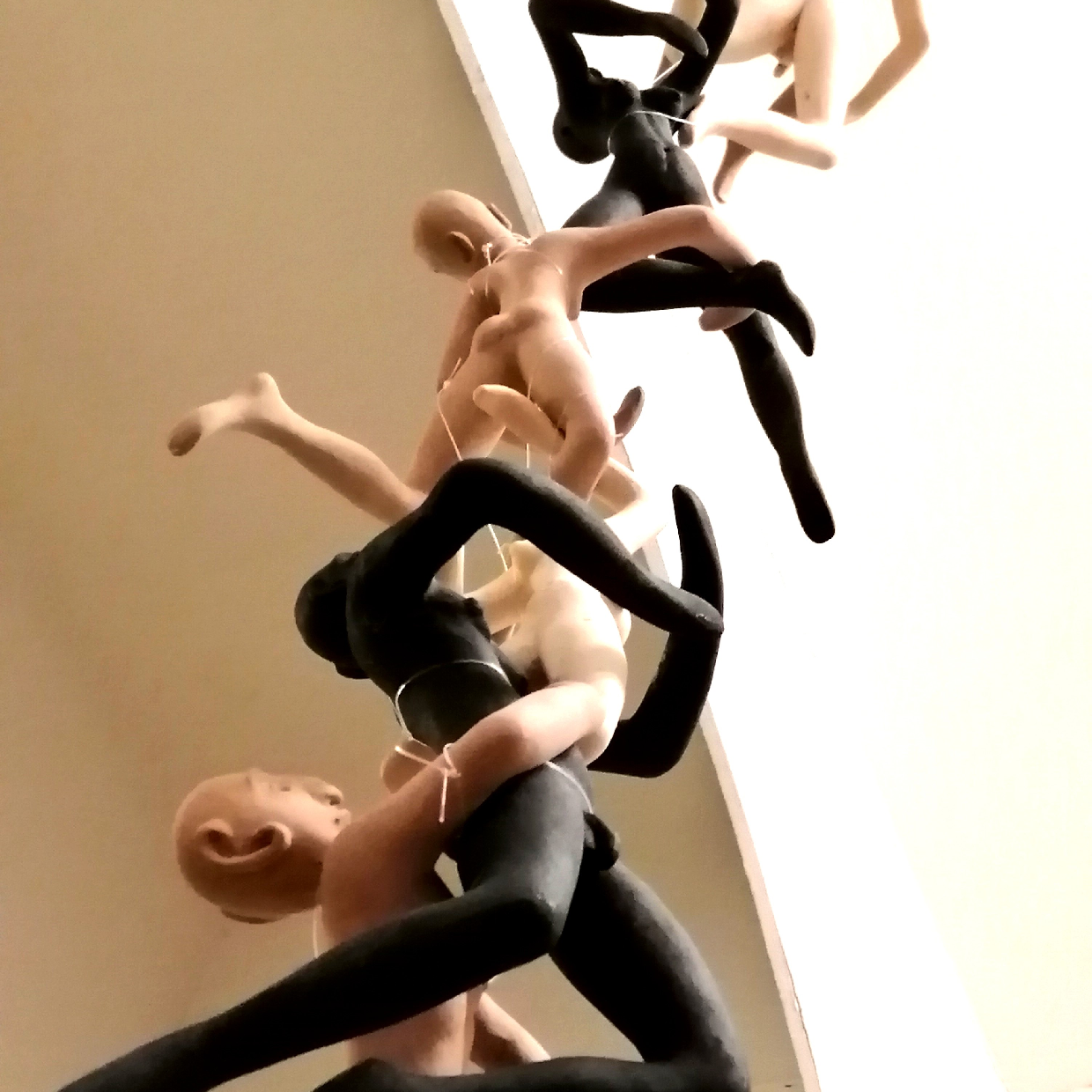 Abbildung: Menschenkette, Höhe 2,70m, Papiermaché, Draht, Jute, Acryl