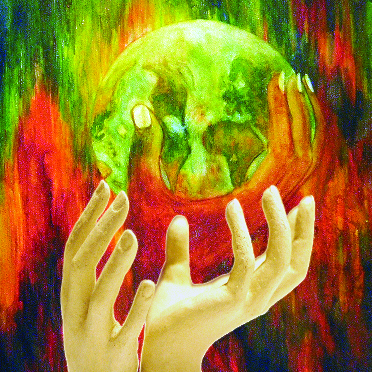 "In Our Hands" ist der Titel des Bildes, das uns die Fragilität unseres Planeten und somit unseres Daseins vor Augen führt. Zeitthemen und der Umgang des Menschen mit dem Gegebenen haben mich seit meiner Jugend im Kreativen Prozess bewegt und seit der Eröffnung meines Ateliers 1991 konstant mit Malerei, Plastik, Kunsttherapie, Menschenrechtsarbeit, Biografiearbeit und der Begegnung mit dem Wesenskern des Menschen an sich arbeiten lassen.